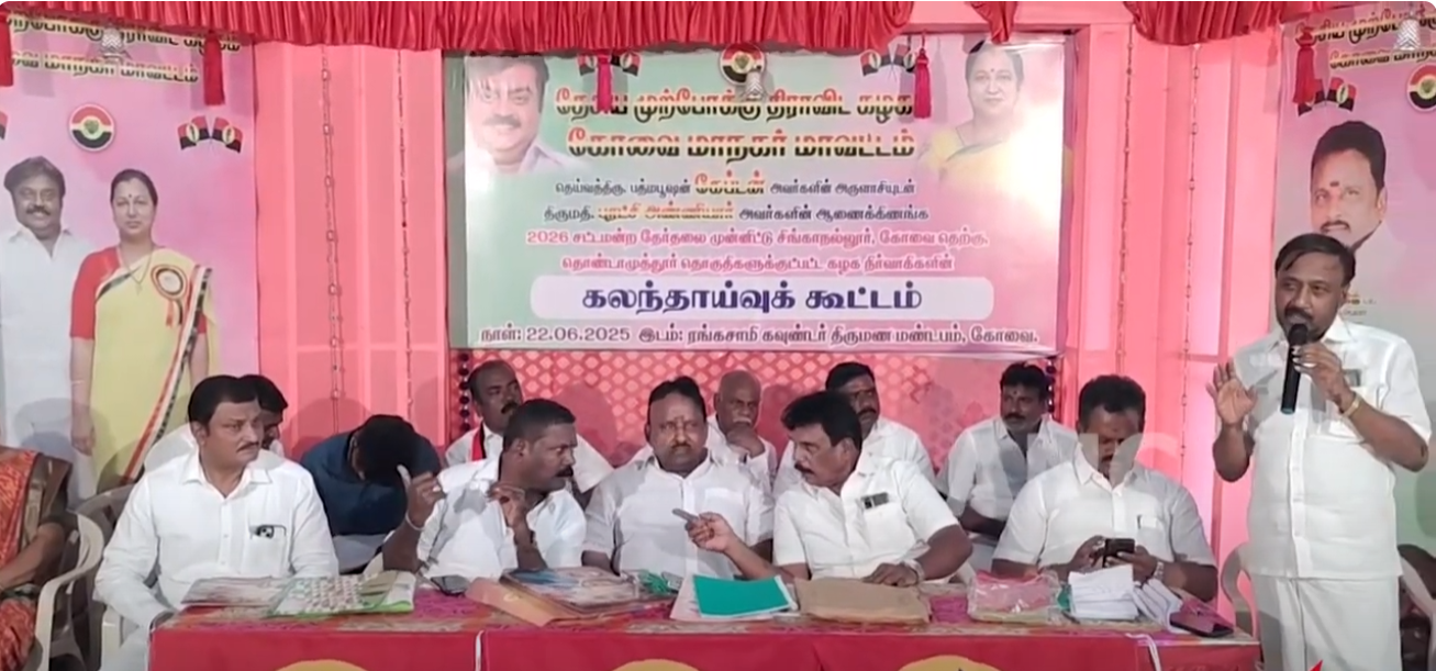 Post navigation கோவை, பேரூர் ஆதீனத்தின் 24-ம் குரு மகா சந்நிதானம் சாந்தலிங்க இராமசாமி அடிகளார் மற்றும் ஆர்.எஸ்.எஸ் அமைப்பின் நூற்றாண்டு விழா நடை பெறுகிறது பாரம்பரிய சிவவேள்வி பூஜையில் ஆர்.எஸ்.எஸ் அமைப்பின் தலைவர் மோகன் பகவத் கலந்து கொண்டு உள்ளார். சிறுவாணி அணையில் முழுமையாக தண்ணீர் தேக்காவிட்டால் அ.தி.மு.க போராட்டம் நடத்தும் – எஸ் பி வேலுமணி !!!