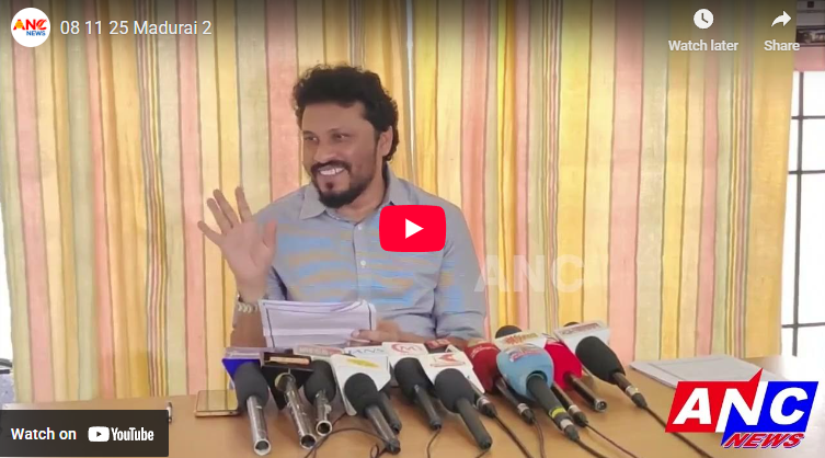 Post navigation உச்சநீதிமன்ற தீர்ப்புவரை SIR நிறுத்தம் செய்யக்கோரி மதுரையில் 33 அமைப்புகள் ஒன்றிணைந்து தீர்மானம் தேர்தல் ஆணையத்தி்ன் விதிகளுக்கு உட்பட வேண்டும் இல்லையெனில் திமுகவின் கட்சி அங்கிகாரத்துக்கு அபாயம் தான் – தமிழகத்தில் நடக்கின்ற சட்ட விரோத நடவடிக்கைகளை உச்சநீதிமன்றம் உன்னிப்பாக கவனித்து வருகிறது சார் (SIR)/என்றாலே முதலமைச்சருக்கு ஜீரம் வந்துவிடுகிறது – பாஜக மூத்த நிர்வாகி ஹெச்.ராஜா பேட்டி